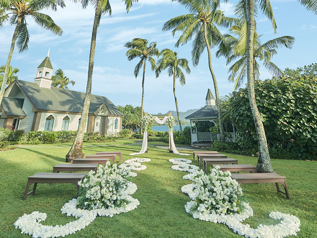 ・雨天や強風などの場合、現地の判断により代替会場(チャペル)での実施となります。雨天時に代替会場(チャペル)での挙式の場合も音楽奏者はギターまたはウクレレとなります。